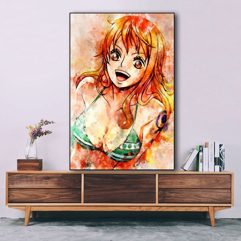 - Nami, la navigatrice talentueuse et la voleuse habile, est souvent représentée sur les posters dans des poses dynamiques, tenant sa précieuse carte du monde ou son bâton climatique. Son intelligence, son courage et son sens de l'aventure sont parfaitement capturés dans ces œuvres d'art, faisant d'elle un personnage incontournable dans l'univers de One Piece.