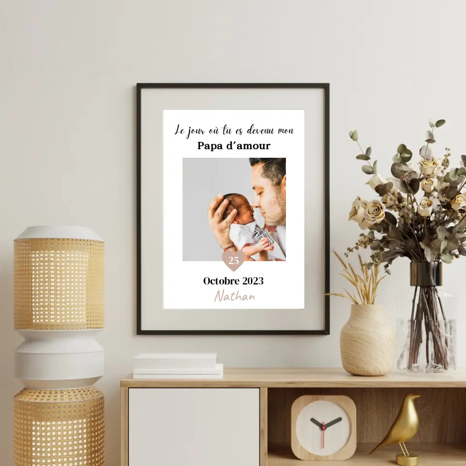 Les affiches personnalisées ont le pouvoir d'immortaliser des moments spéciaux et de les transformer en souvenirs durables. Que ce soit une photo du nouveau-né, une image du père tenant son enfant pour la première fois, ou une illustration représentant un moment mémorable, les affiches personnalisées capturent l'essence de ces moments précieux. Elles permettent de revivre ces souvenirs chaque fois que le père regarde l'affiche accrochée au mur, créant ainsi un lien émotionnel fort entre le père et son enfant.