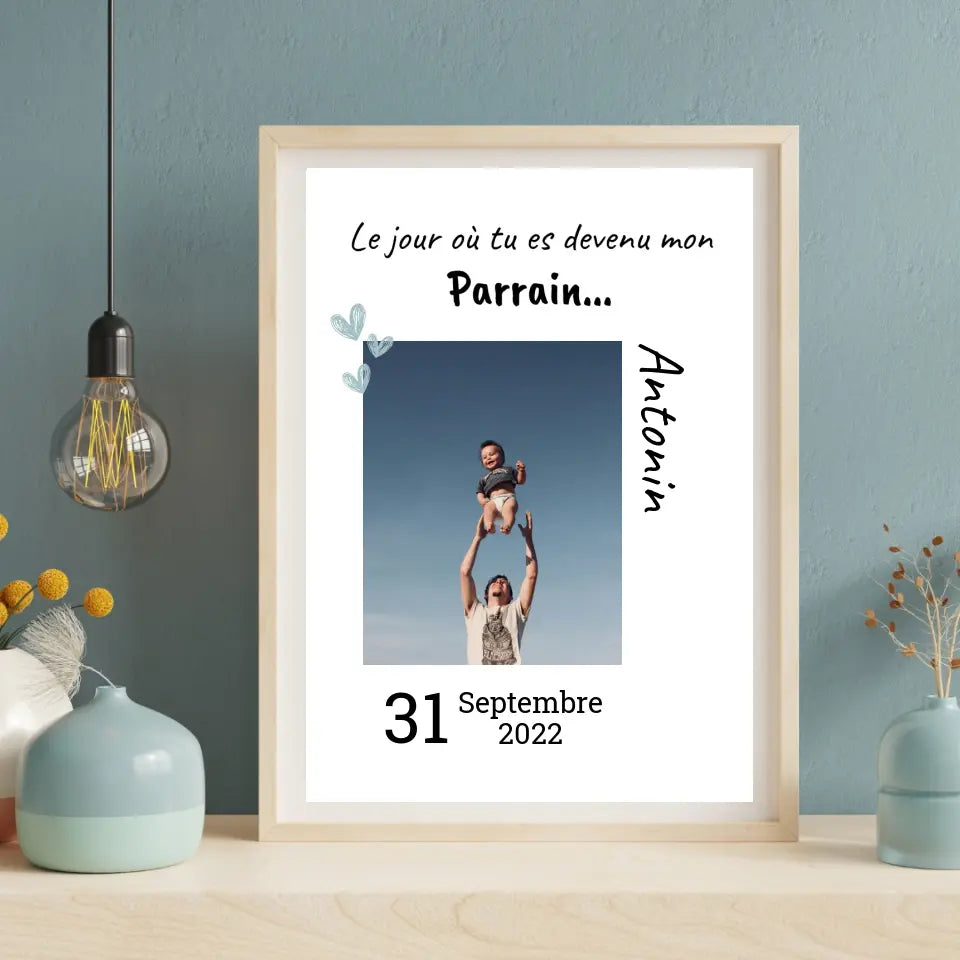 - Affiche avec une photo de votre enfant avec son parrain, accompagnée d'une citation inspirante sur le rôle d'un parrain.
