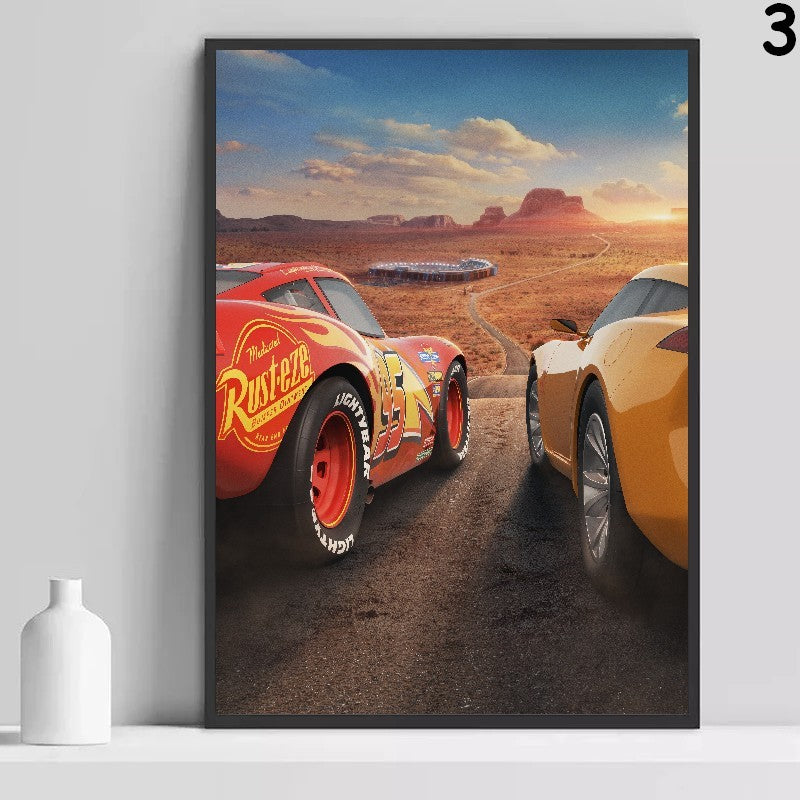 Favorise l'immersion dans l'univers de Cars : Pour un enfant qui adore les aventures de Flash McQueen et de ses amis, recevoir une affiche Cars est comme une invitation à plonger dans leur monde. Cela lui permet de décorer sa chambre avec ses personnages préférés et de s'immerger davantage dans l'univers coloré et dynamique du film.