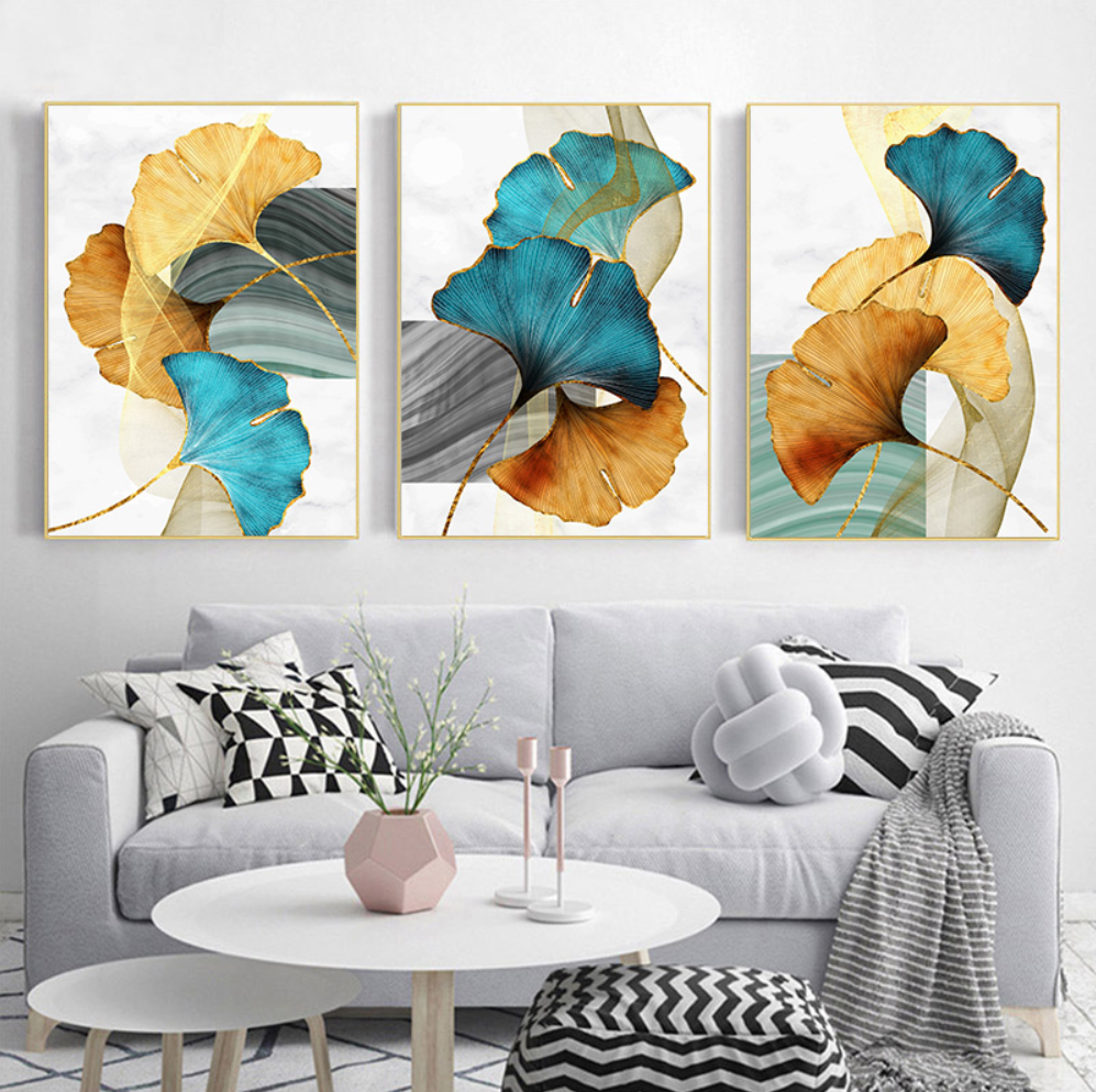 Salon : Utilisez un grand poster mural fleurs au-dessus du canapé pour créer un point focal dans votre salon. Choisissez des couleurs vives et des motifs audacieux pour ajouter de la vivacité à l'espace.